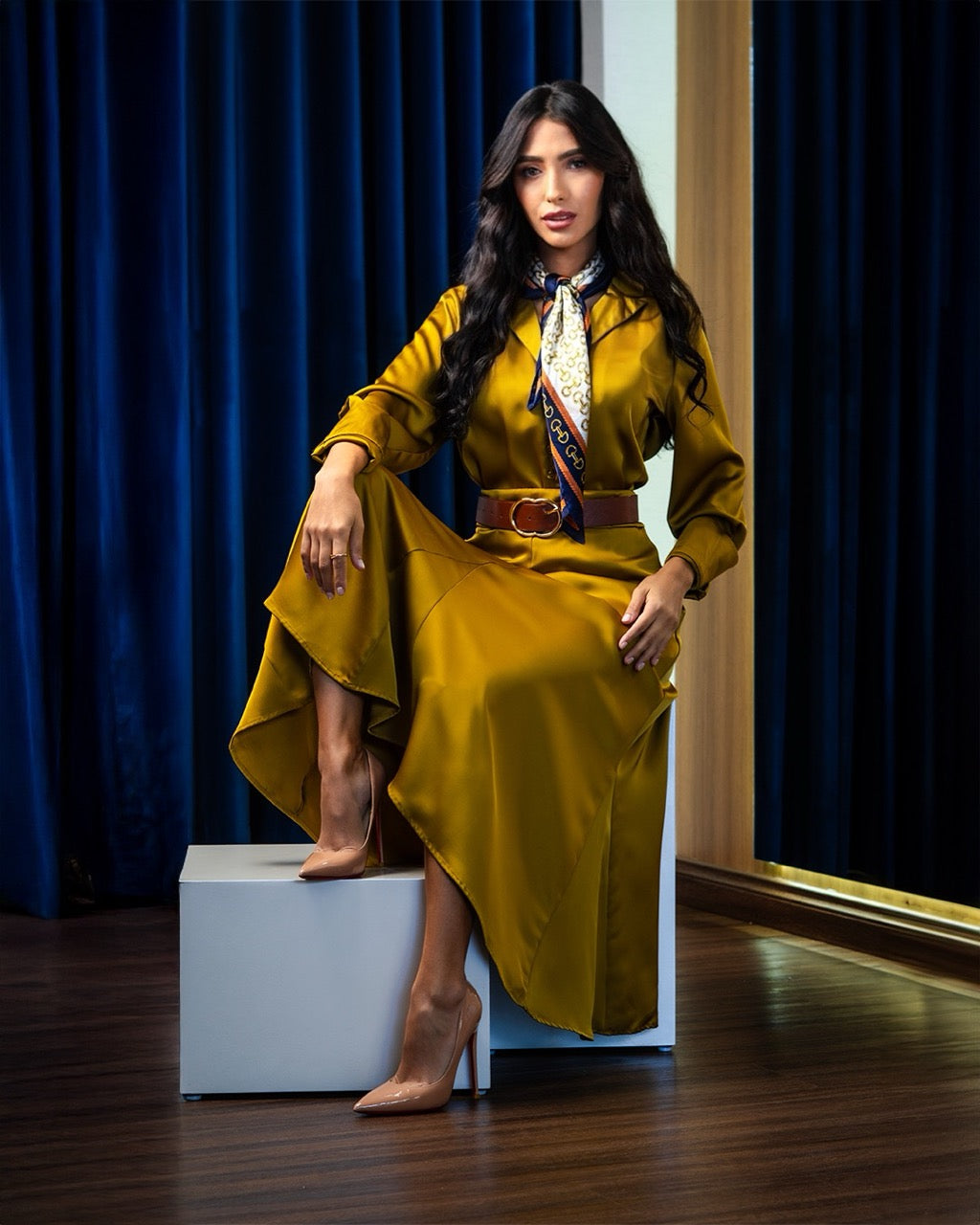 El Olive Classic Set es la combinación perfecta entre elegancia y sofisticación contemporánea. Confeccionado en un tejido satinado que aporta un brillo sutil y refinado, este conjunto de falda midi y camisa crea una silueta fluida que resalta la feminidad con un estilo moderno.